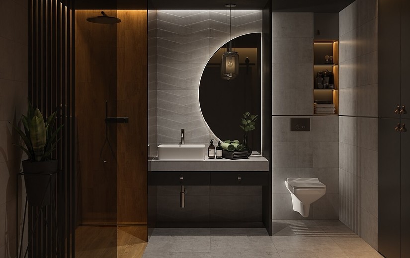 • Uniwersalność: Świetnie komponuje się zarówno ze złotą armaturą w stylu glamour, jak i z surowym drewnem w klimacie loftowym.